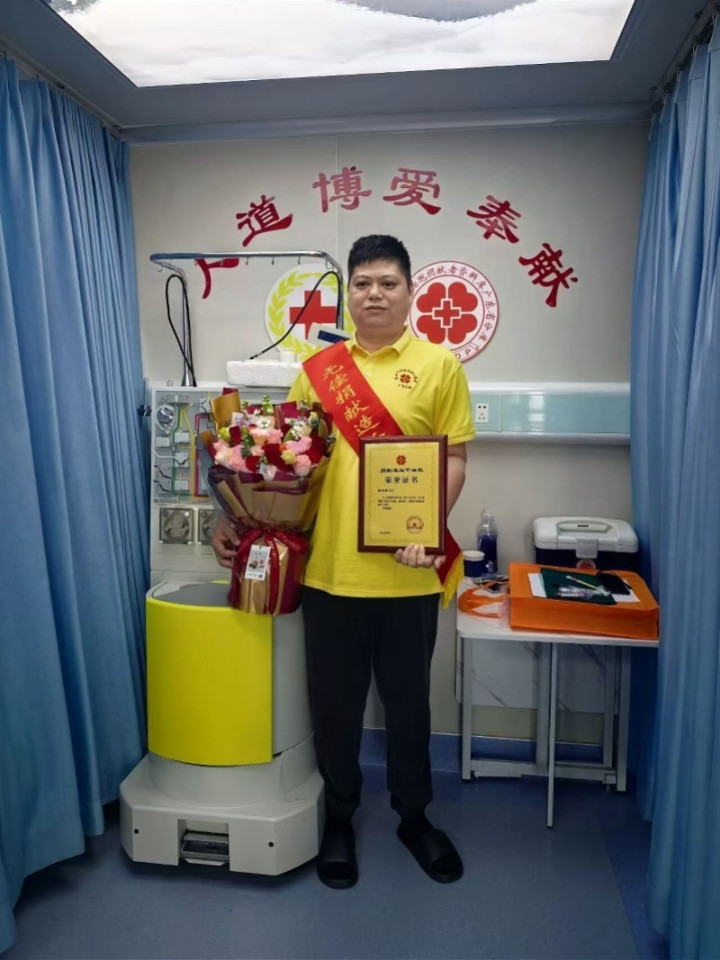 甄顺年,男,1983年4月出生,广东开平人。甄顺年自2001年以来参与无偿献血24次总计8900毫升,其间,他主动加入开平市造血干细胞捐献志愿者队伍,采集8毫升血样登记加入中华骨髓库。在得知与一名陌生患者配型成功后,他毅然辞去工作在家休养一段时间,全力调整好身体状态以确保能完成捐献的郑重承诺。2025年12月17日,他成功捐献239毫升造血干细胞。